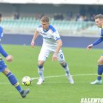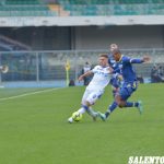 Ma al 40′ arriva la doccia fredda per i salentini: Doig dalla sinistra mette al centro per la testa di De Paoli che tutto solo batte Falcone e segna il gol del vantaggio scaligero.
