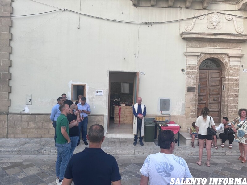 Tanta l’emozione durante il rito della benedizione da parte del parroco di Guagnano, Don Cosimo, e durante i saluti istituzionali del sindaco.