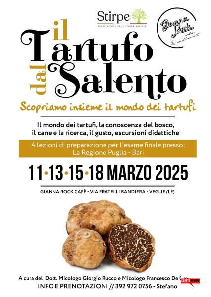 Il corso si svolgerà presso Gianna Rock Café di Veglie, nelle date 11-13-15 e 18 marzo 2025 e sarà tenuto dal dott. micologo Giorgio Rucco e dal micologo Francesco De Giorgi.