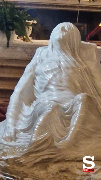 È stata presentata al pubblico nella solenne cornice della messa delle Palme, nella Chiesa del Sacro Cuore di Gesù a Prati, l’opera scultorea “Oltre il Velo”, il Cristo Velato realizzato dal maestro Albino Sirsi, scultore e pittore originario di Campi Salentina (LE).