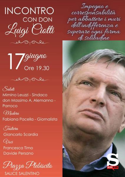 Un messaggio forte e urgente contro l’indifferenza e la solitudine, a favore dell’impegno civile e della responsabilità condivisa. È il cuore dell’incontro in programma questa sera, lunedì 17 giugno alle ore 19.30, in piazza Plebiscito a Salice Salentino, con Don Luigi Ciotti, fondatore di Libera. Associazioni, nomi e numeri contro le mafie.