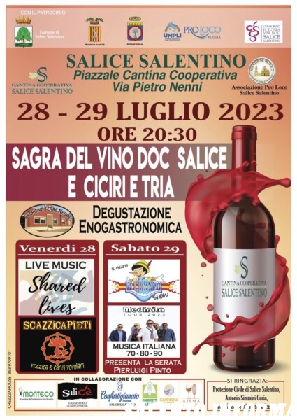 Spettacolo Sagra del Vino DOC Salice e Ciciri e tria: Salice si prepara a far festa byFederico MarraLuglio 25, 2023